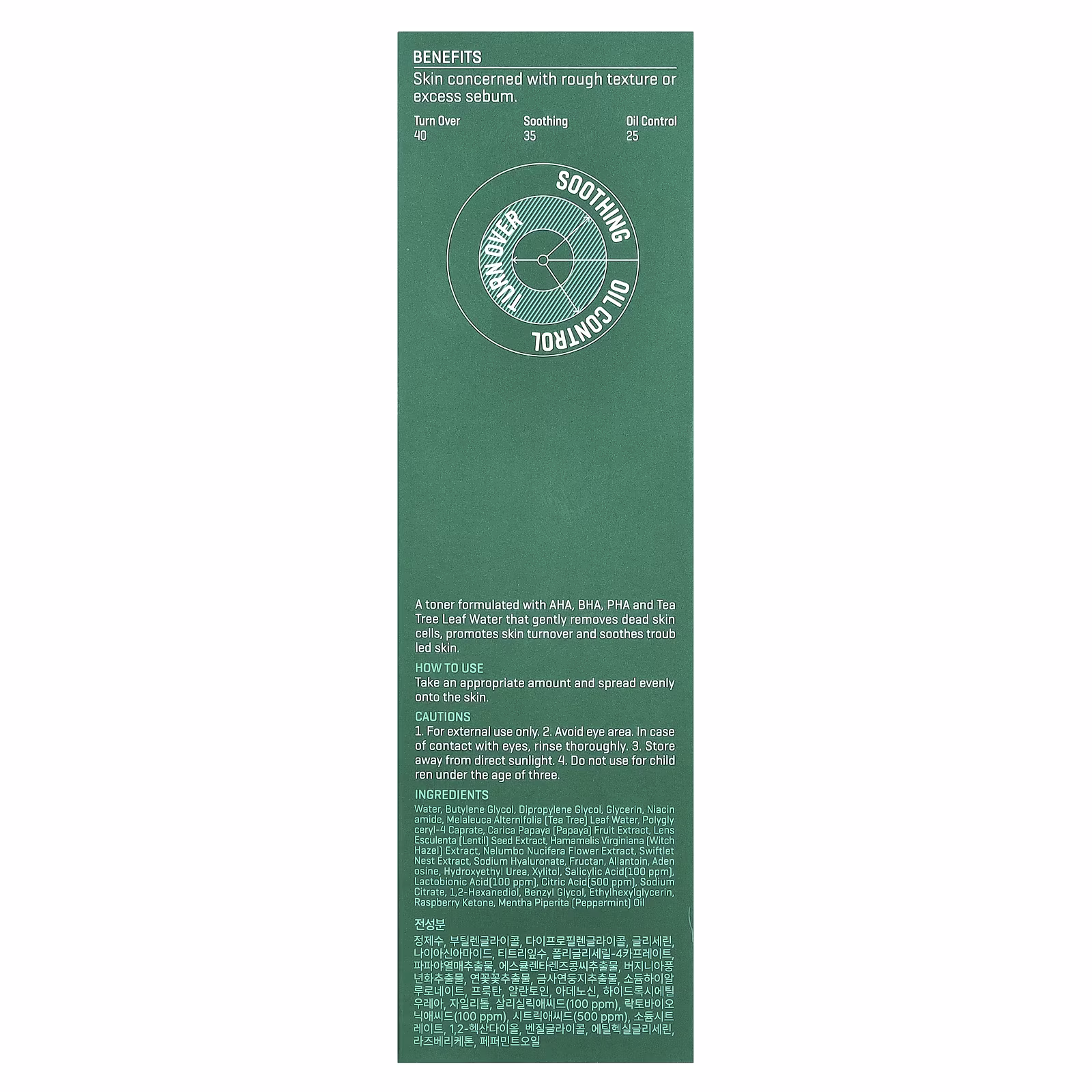 A toner formulated with AHA, BHA, PHA and tea tree leaf water that gently removes dead  skin cells, promotes skin turnover and soothes troubled skin.